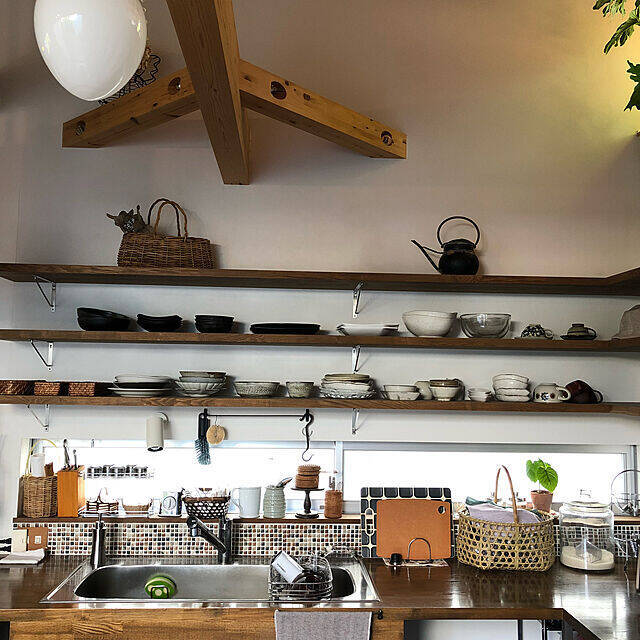 気分は古民家カフェ オープン収納で眺めて楽しく使いやすい空間へ 憧れのキッチン Vol 63 Noroさん Roomclip Mag 暮らしとインテリアのwebマガジン